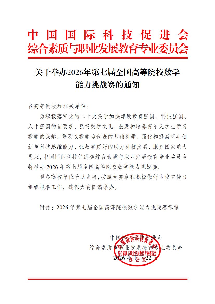附件:关于举办2026年第七届全国高等院校数学能力挑战赛的通知.pdf