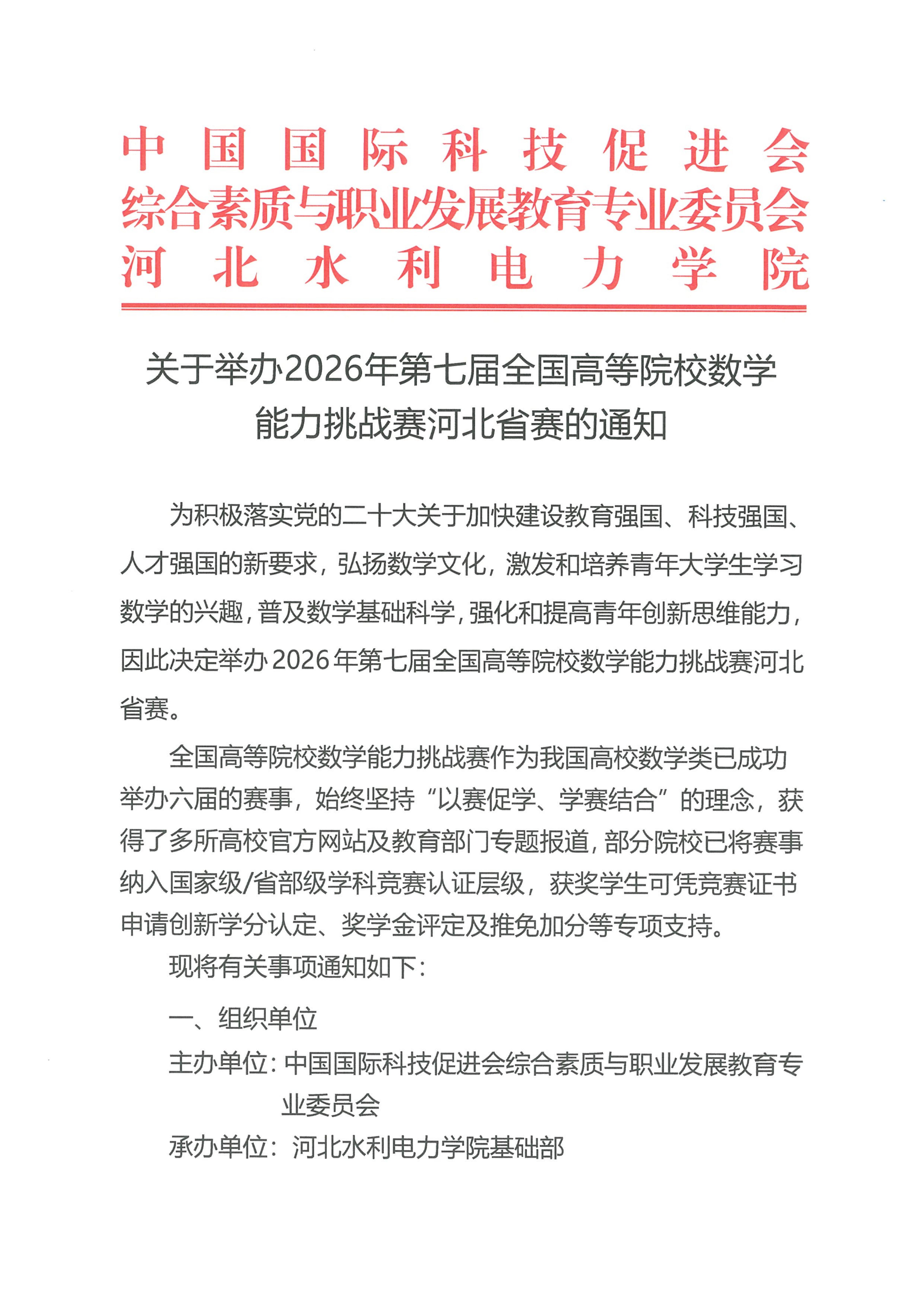 关于举办2026年第七届全国高等院校数学能力挑战赛河北省赛报名通知